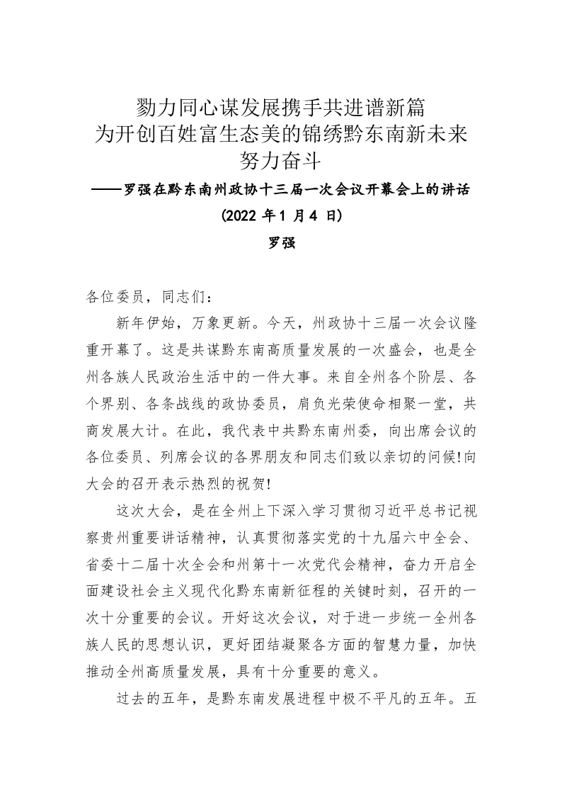 / 罗强在黔东南州政协十三届一次会议开幕会上的讲话(20220104)