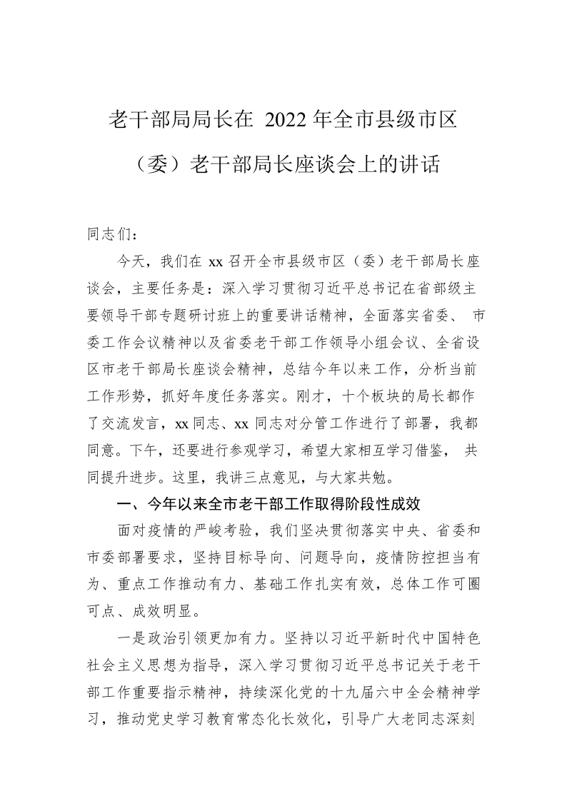 / 老干部局局长在2022年全市县级市区(委)老干部局长座谈会上的讲话