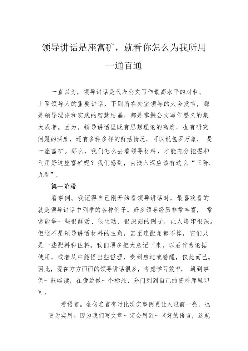 / 领导讲话是座富矿,就看你怎么为我所用一通百通