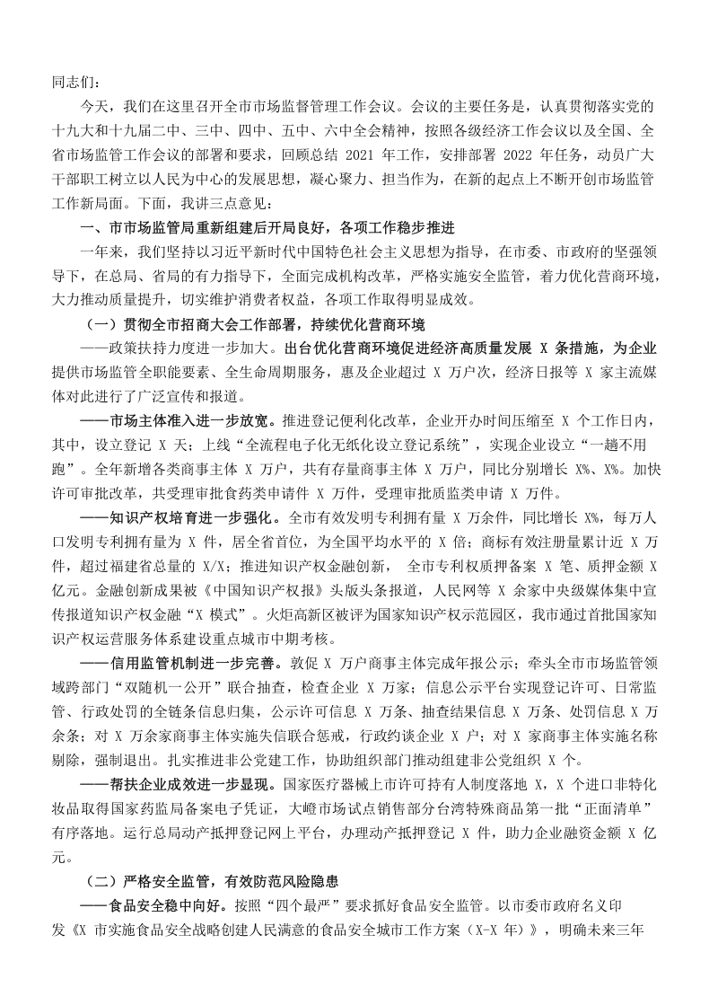 / (1.6)在全市市场监督管理工作会议上的讲话