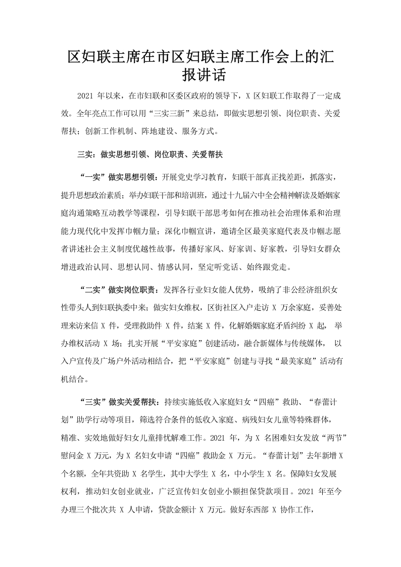 / (1.9)区妇联主席在市区妇联主席工作会上的汇报讲话