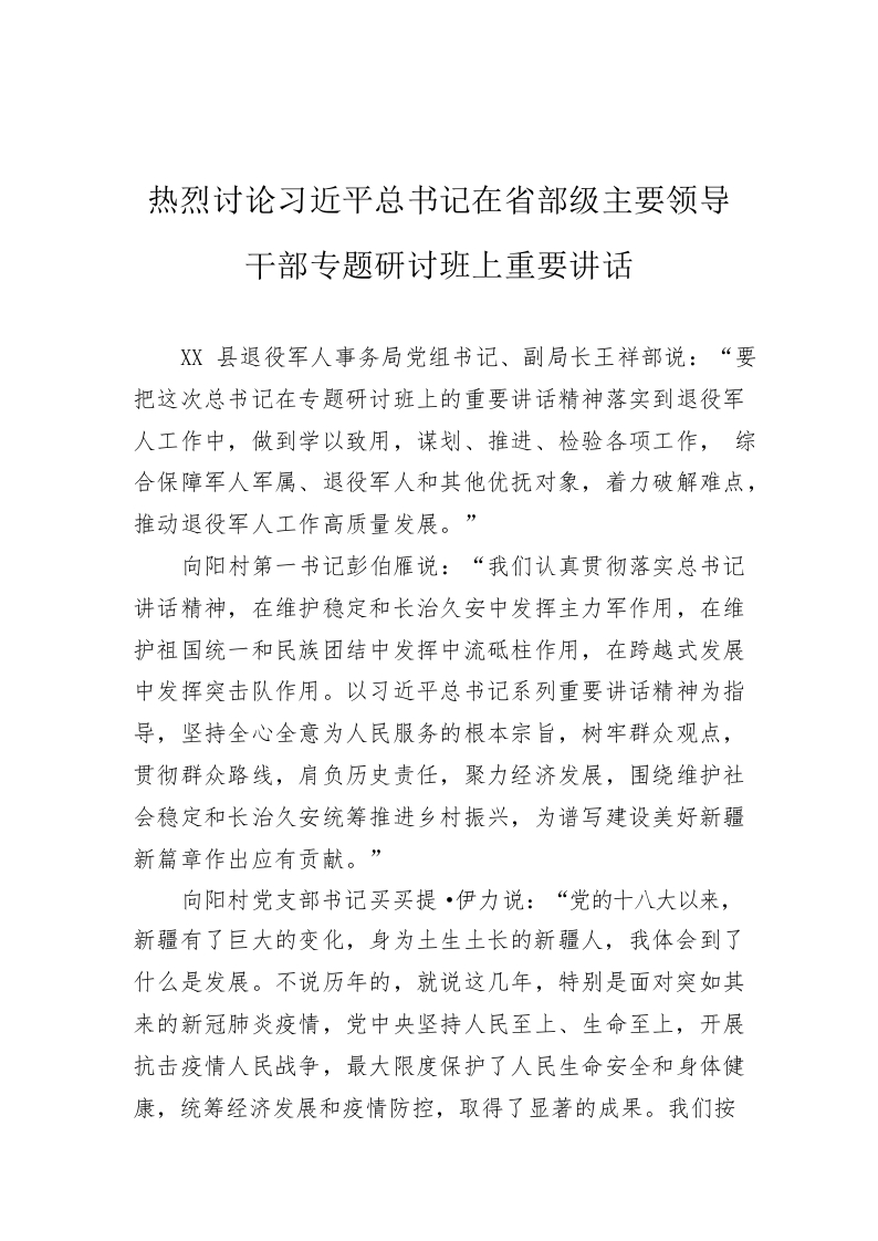 (20220809)热烈讨论习近平总书记在省部级主要领导干部专题研讨班上重要讲话
