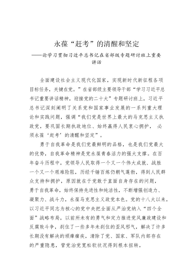 (20220815)永葆“赶考”的清醒和坚定——论学习贯彻习近平总书记在省部级专题研讨班上重要讲话