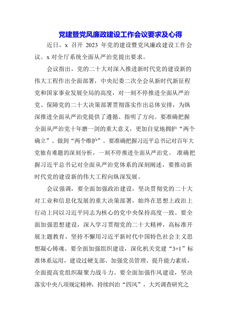 (3篇)党风廉政建设暨从严治党会议讲话材料及警示片心得体会