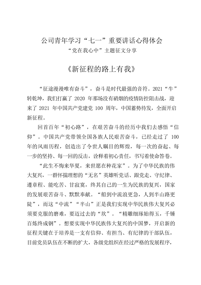 (7.22)公司青年学习“七一”重要讲话心得体会