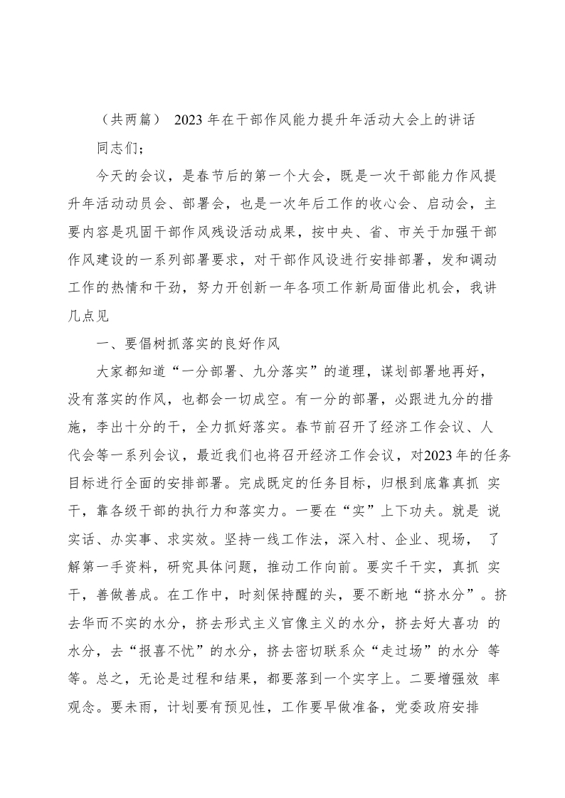 (共两篇) 2023年在干部作风能力提升年活动大会上的讲话