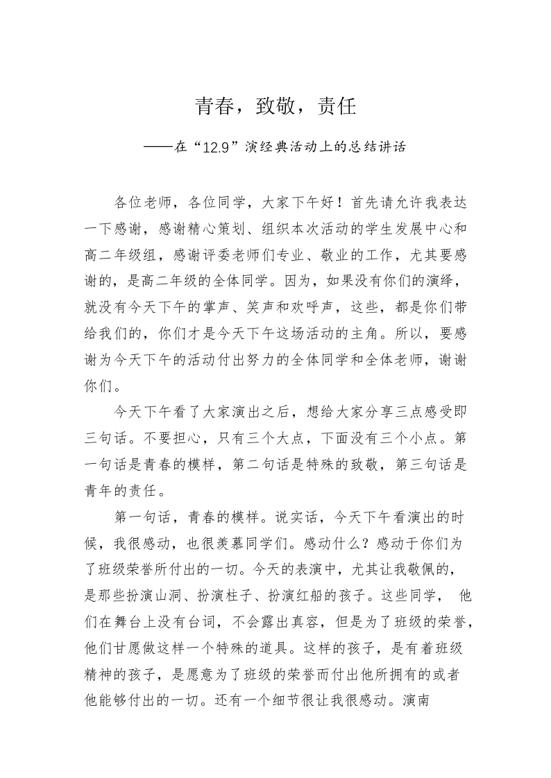 / (学校)在“12.9”演经典活动上的总结讲话(20221209)