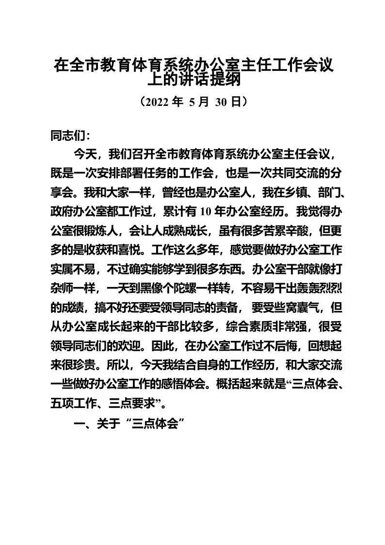 / (川-泸教局-无双 )在全市教体系统办公室主任会议上的讲话