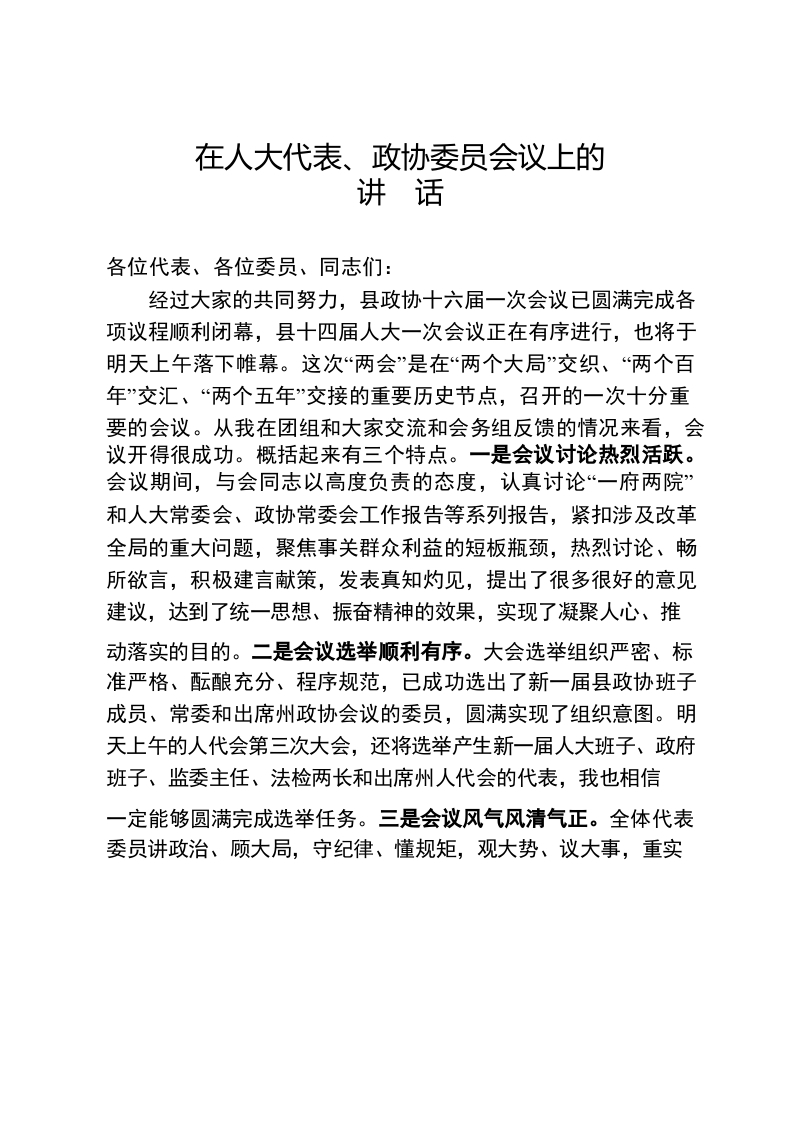 (川-理政研-快乐的码字工)在人大代表、政协委员会议上的讲话