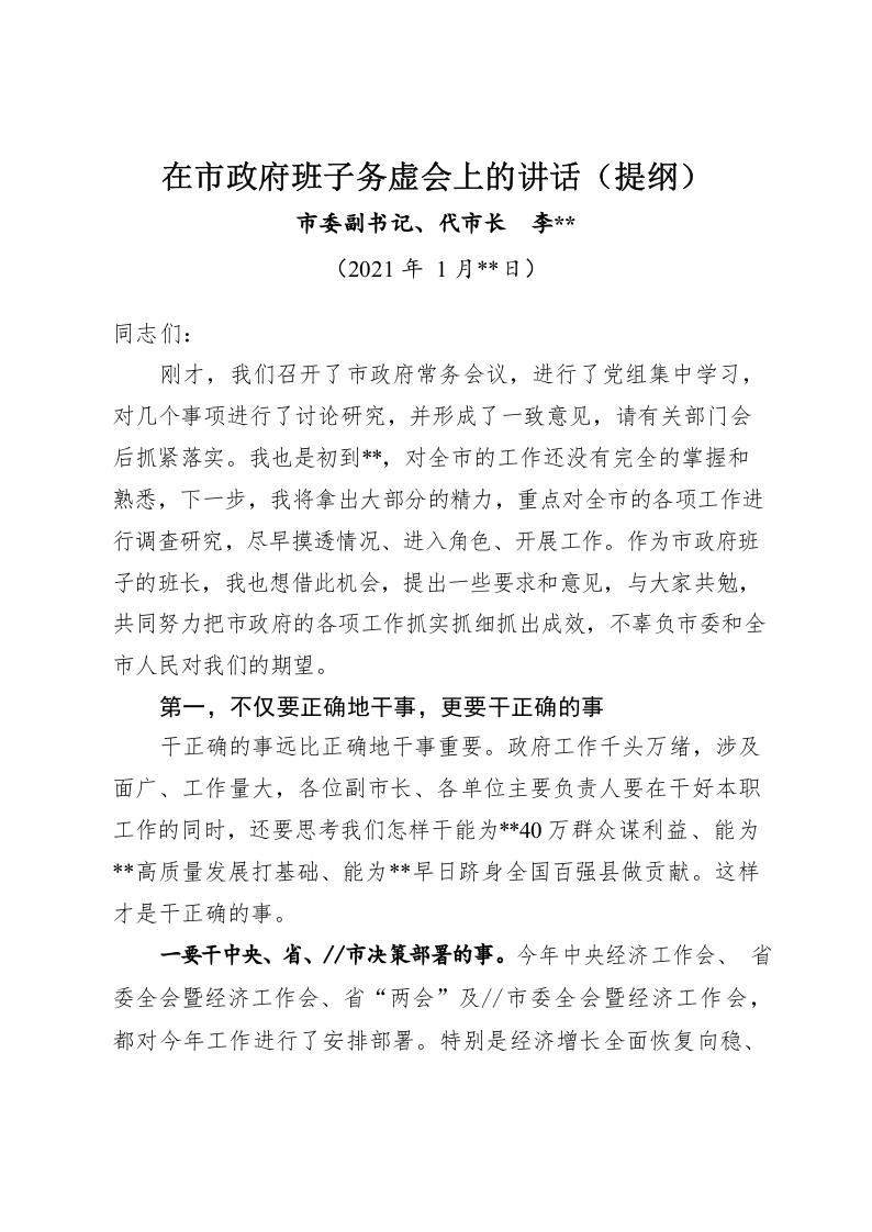 / (豫-孟州府-秦金科)市长在政府班子务虚会上的讲话