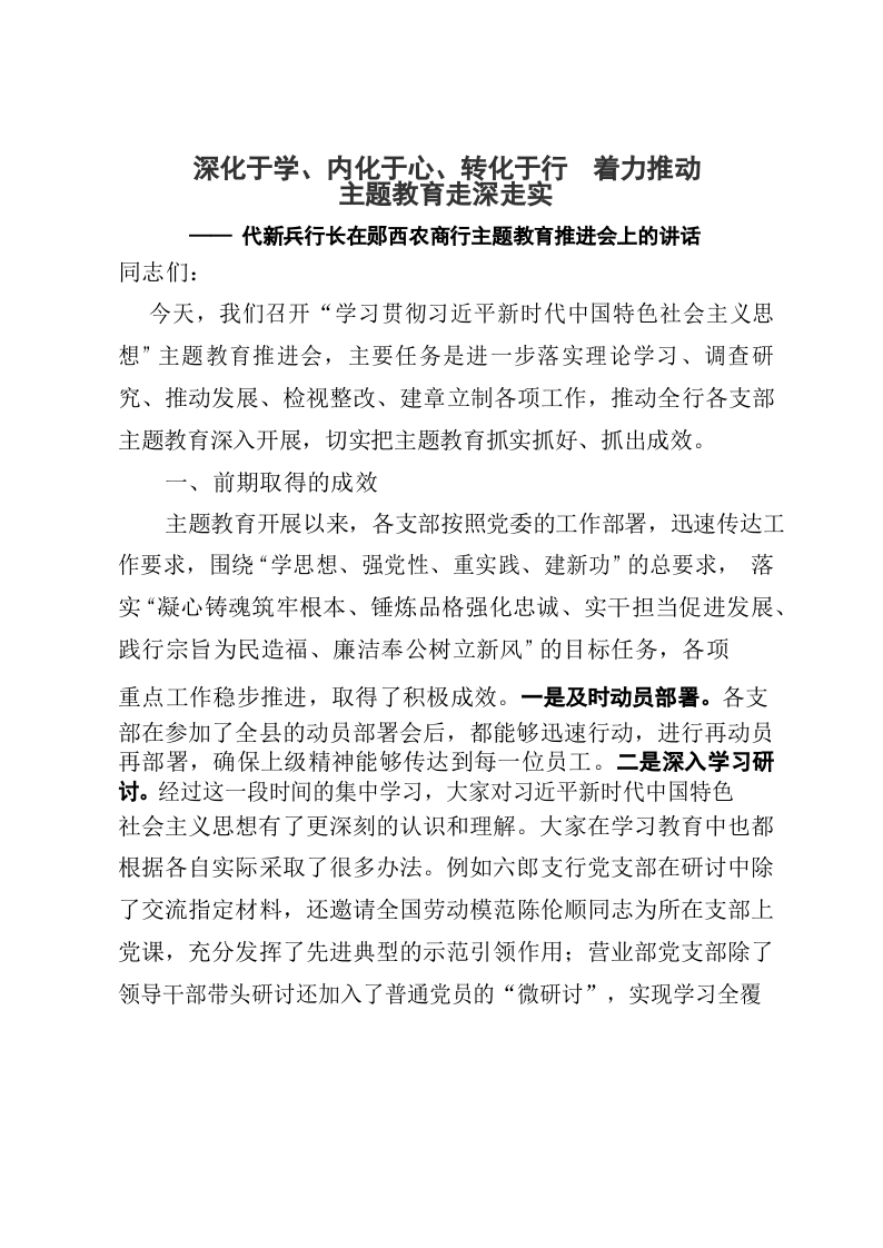 / (银行)在农商行主题教育推进会上的讲话