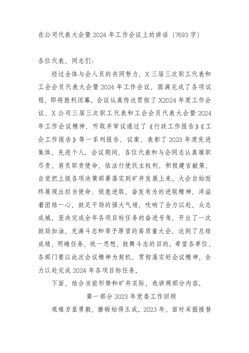 / 国企职代会暨2024年工作会议上的讲话