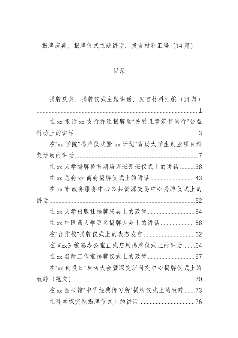 / 揭牌庆典、揭牌仪式主题讲话、发言材料汇编(14篇)
