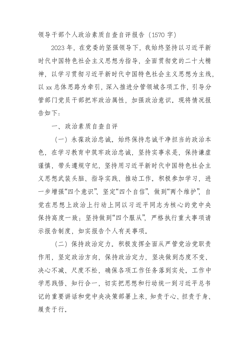 / 领导干部个人政治素质自查自评报告