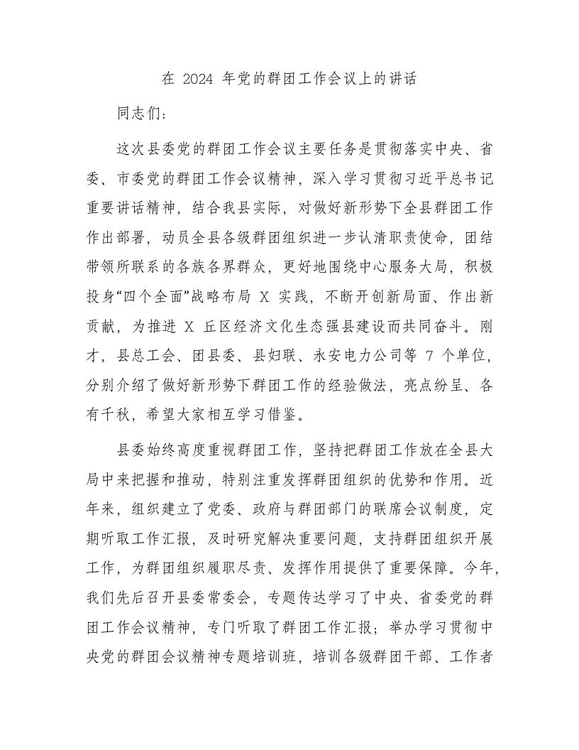 在2024年党的群团工作会议上的讲话