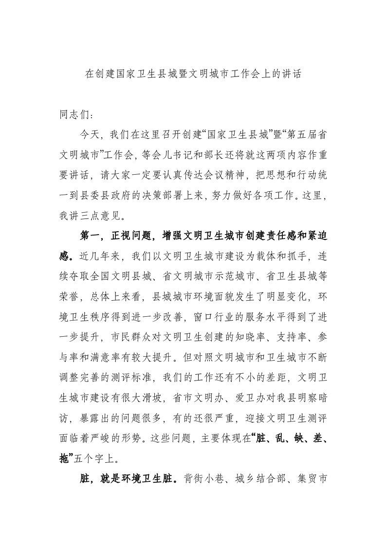 / 在创建国家卫生县城暨文明城市工作会上的讲话