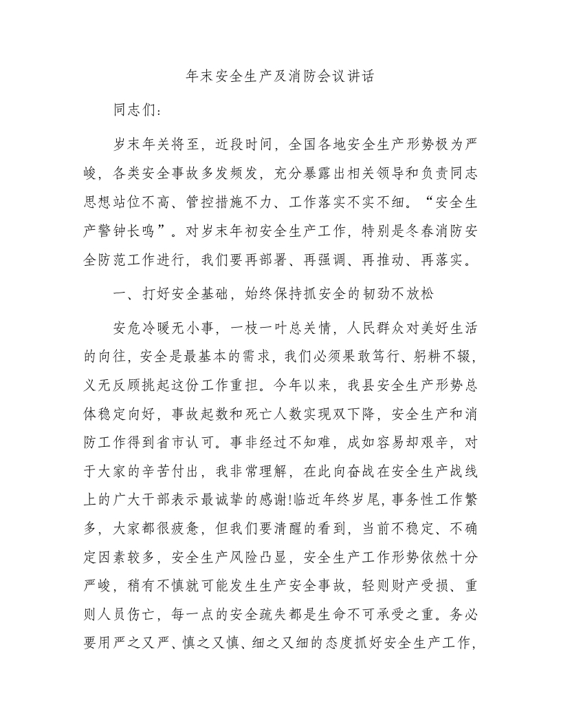 / 年末安全生产及消防会议讲话
