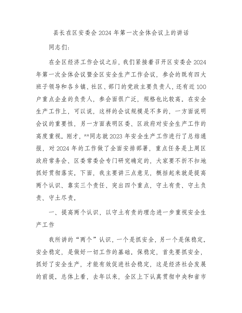 / 县长在区安委会2024年第一次全体会议上的讲话
