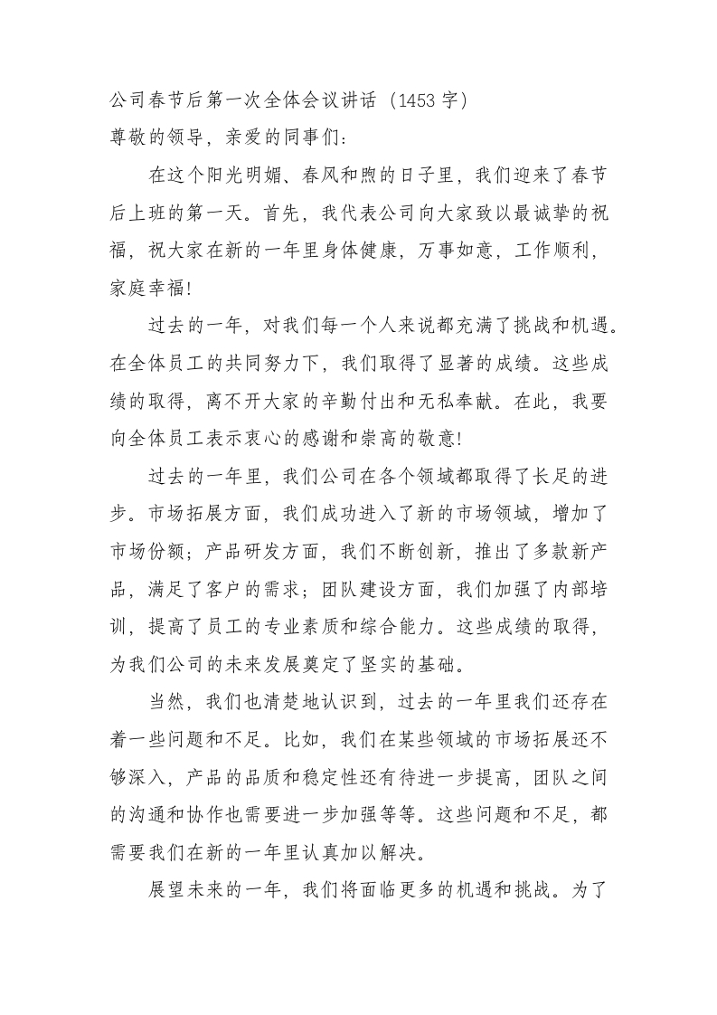 / 国企春节后第一次全体会议讲话