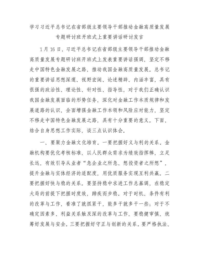 / 学习习近平总书记在省部级主要领导干部推动金融高质量发展专题研讨班开班式上重要讲话研讨发言