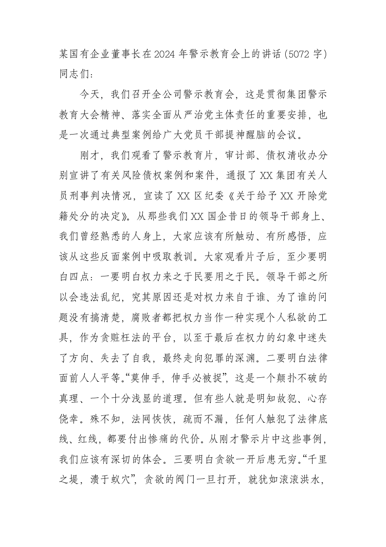 / 国企董事长在2024年警示教育会上的讲话