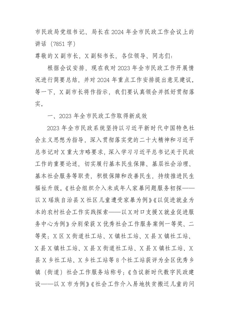 / 市民政局党组书记、局长在2024年全市民政工作会议上的讲话