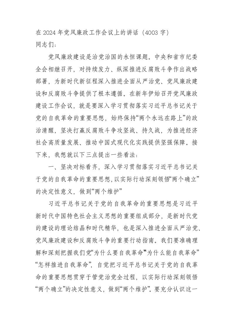 / 在2024年党风廉政工作会议上的讲话
