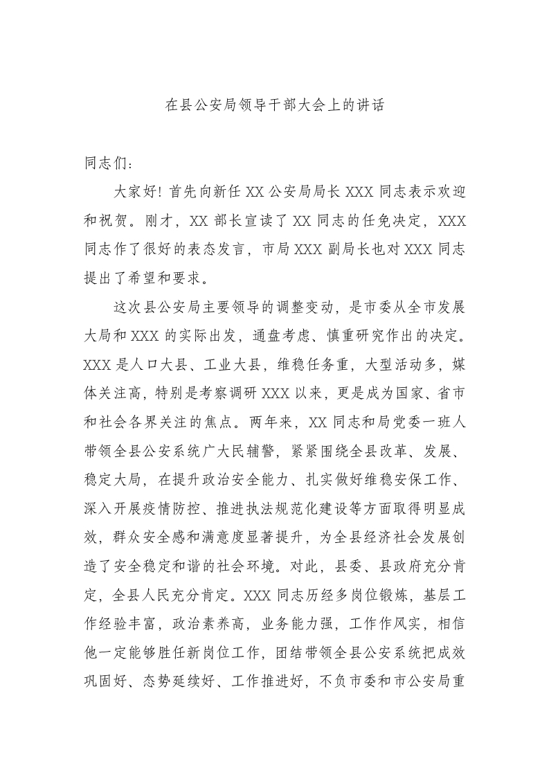 / 在县公安局领导干部大会上的讲话