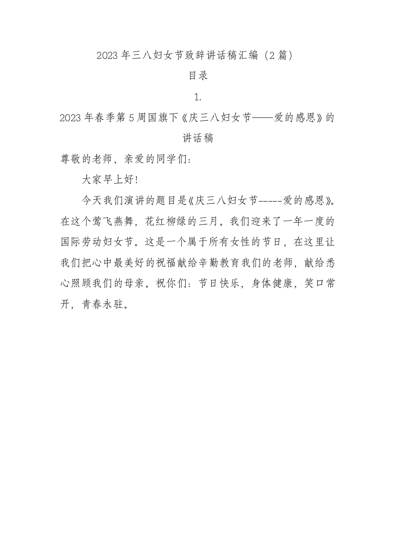 / 2023年三八妇女节致辞讲话稿汇编(2篇)
