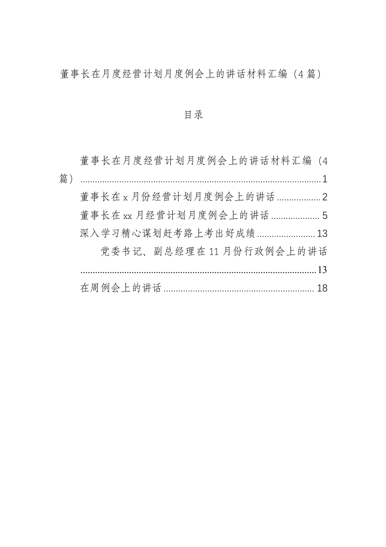 / 董事长在月度经营计划月度例会上的讲话材料汇编(4篇)