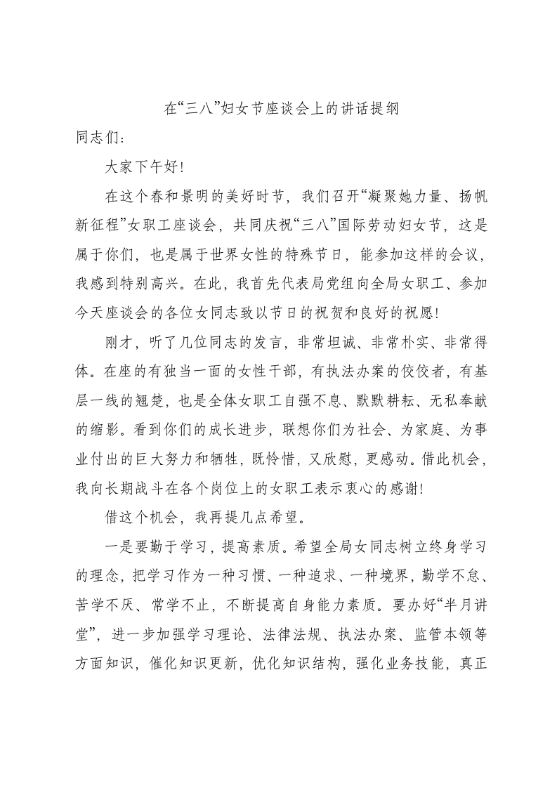 / 在 “三八”妇女节座谈会上的讲话提纲
