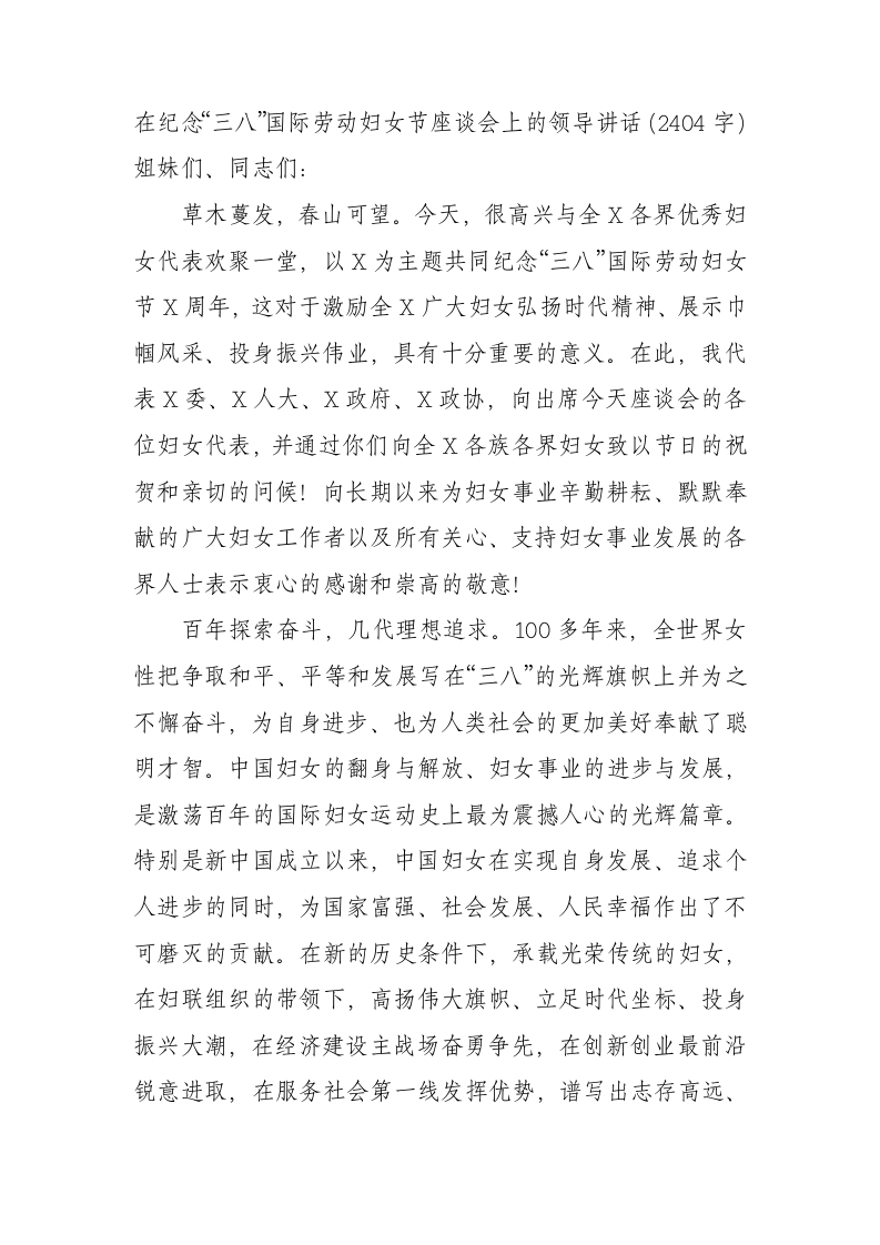 / 在纪念“三八”国际劳动妇女节座谈会上的领导讲话