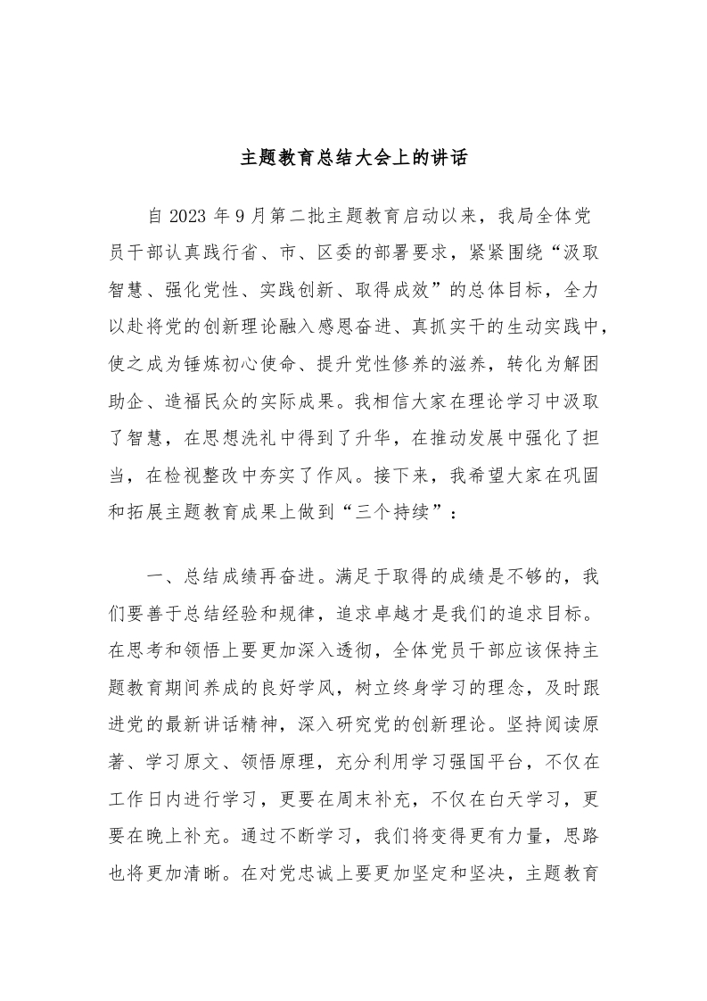 / 主题教育总结大会上的讲话稿