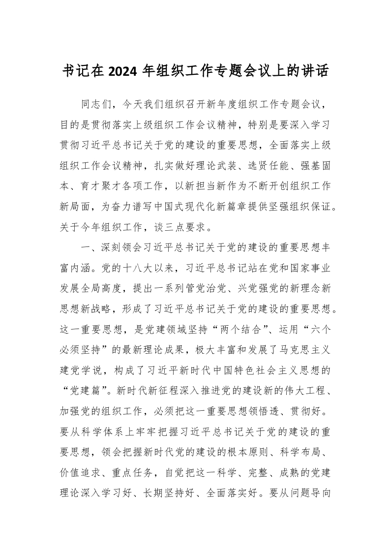 / 书记在2024年组织工作专题会议上的讲话稿