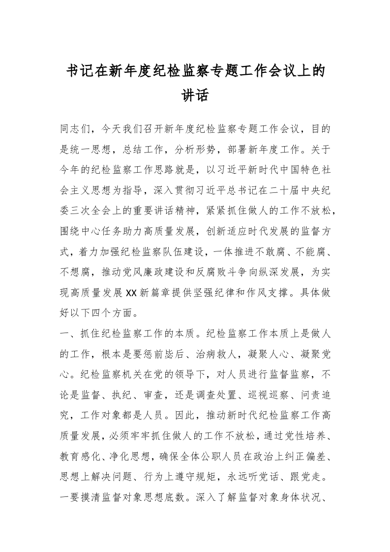 / 书记在新年度纪检监察专题工作会议上的讲话稿