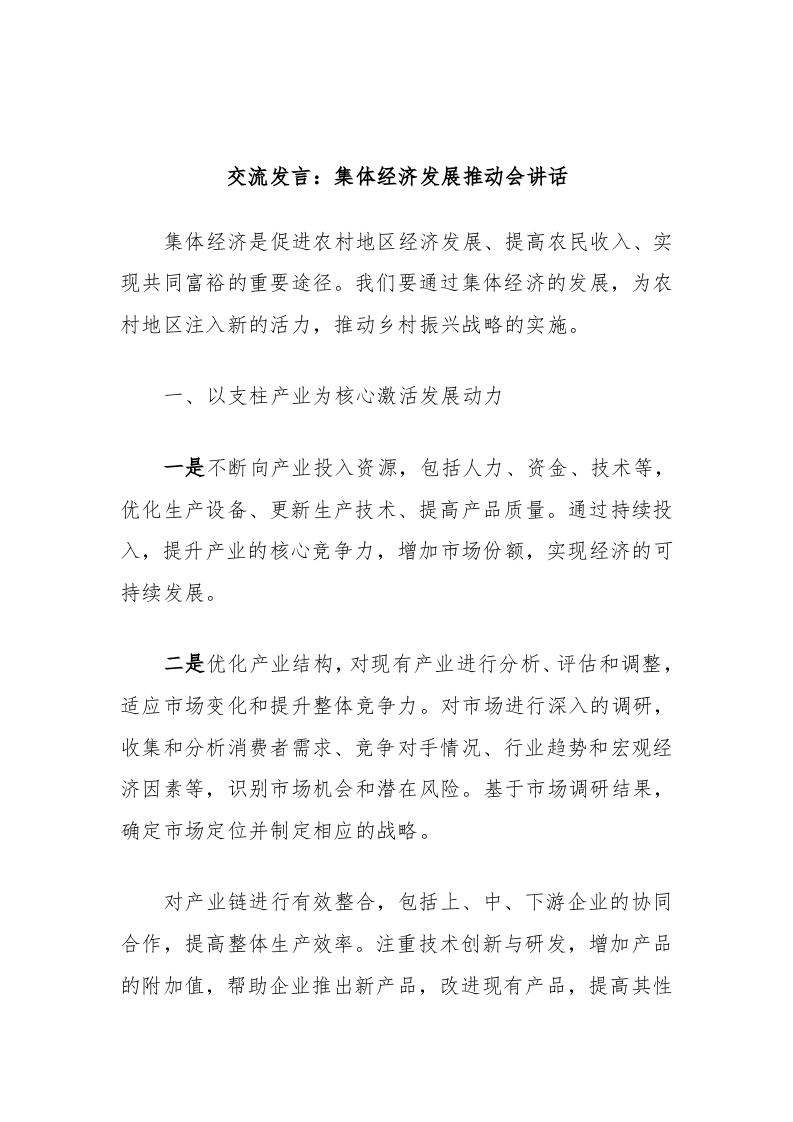 / 交流发言稿:集体经济发展推动会讲话稿
