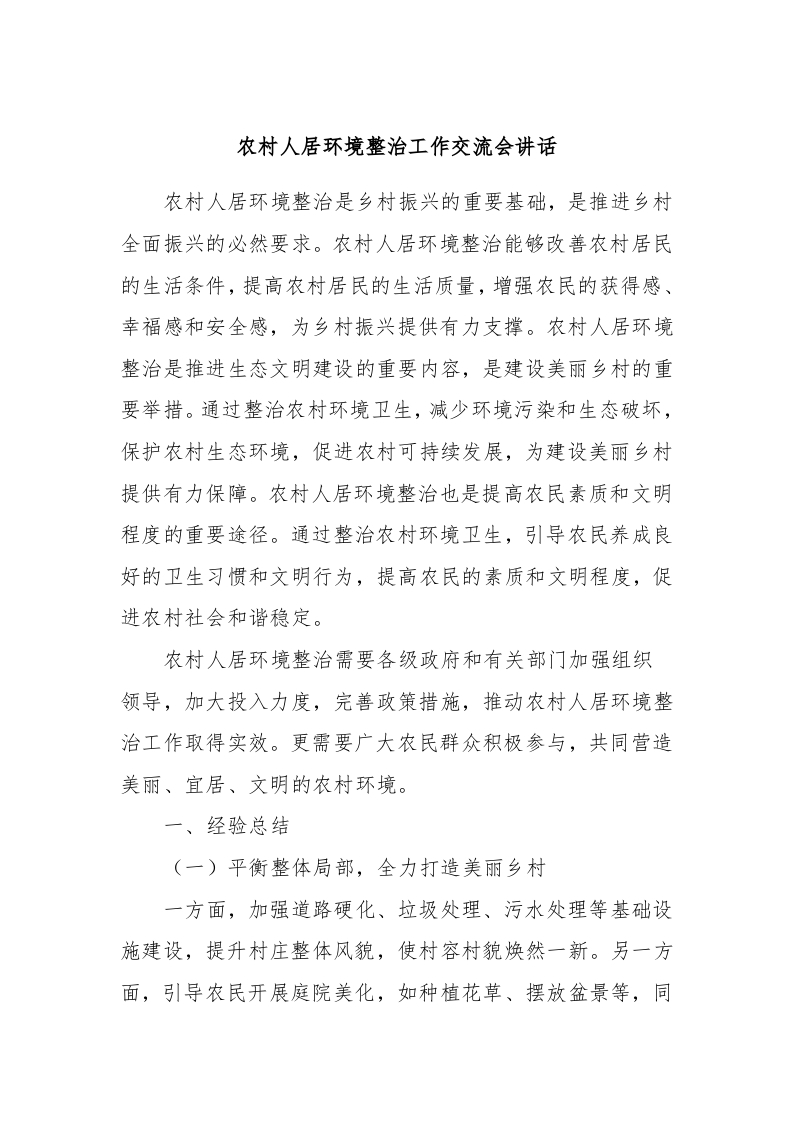 / 农村人居环境整治工作交流会讲话稿