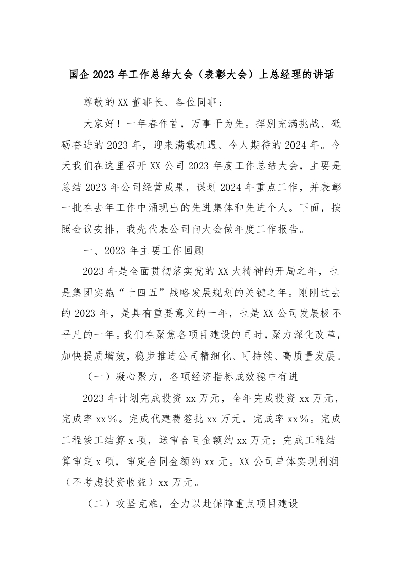 / 国企2023年工作总结大会(表彰大会)上总经理的讲话稿
