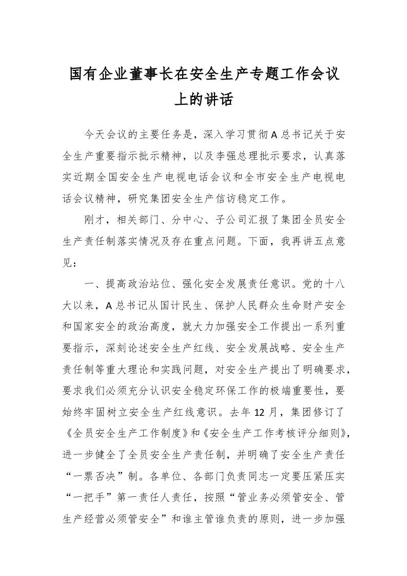 / 国有企业董事长在安全生产专题工作会议上的讲话稿