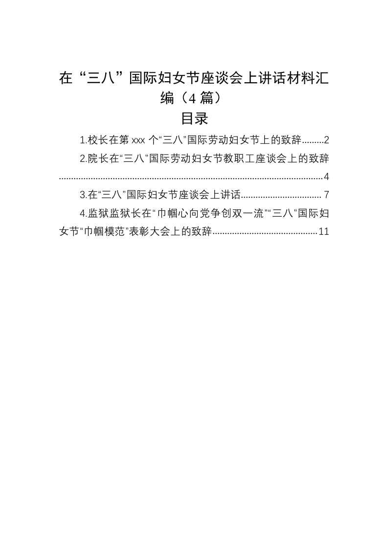 / 在“三八”国际妇女节座谈会上讲话稿材料汇编(4篇)