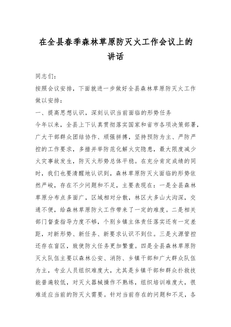 / 在全县春季森林草原防灭火工作会议上的讲话稿