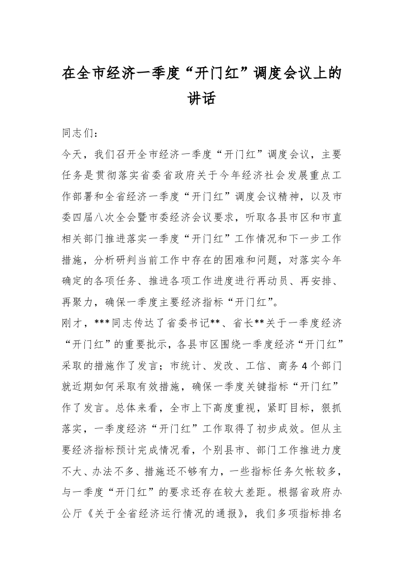 / 在全市经济一季度“开门红”调度会议上的讲话稿