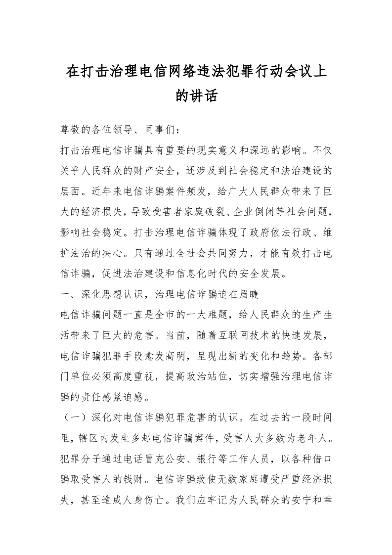 / 在打击治理电信网络违法犯罪行动会议上的讲话稿