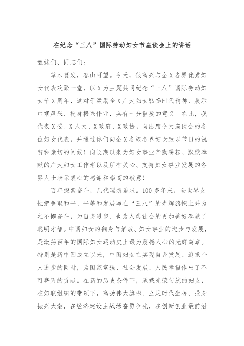 / 在纪念“三八”国际劳动妇女节座谈会上的讲话稿