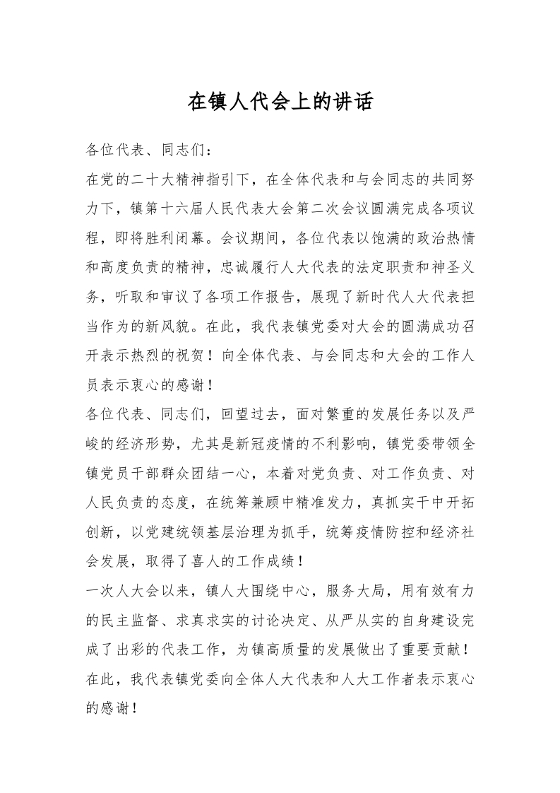 / 在镇人代会上的讲话稿