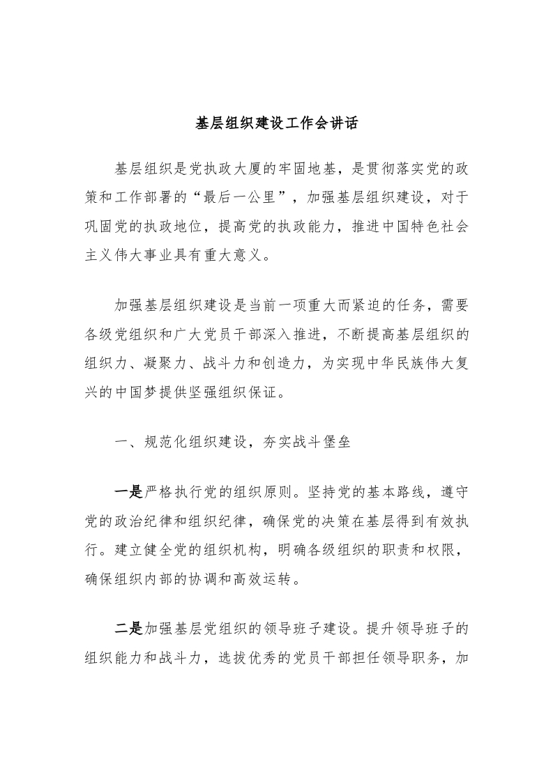 / 基层组织建设工作会讲话稿