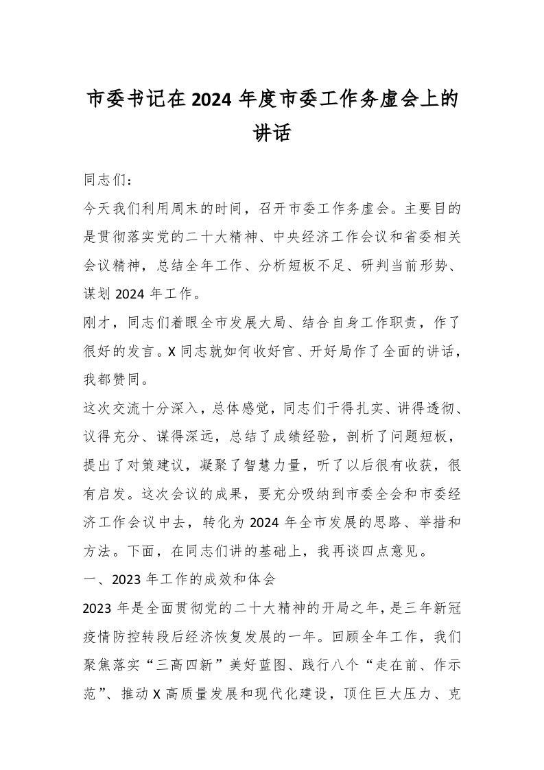 / 市委书记在2024年度市委工作务虚会上的讲话稿