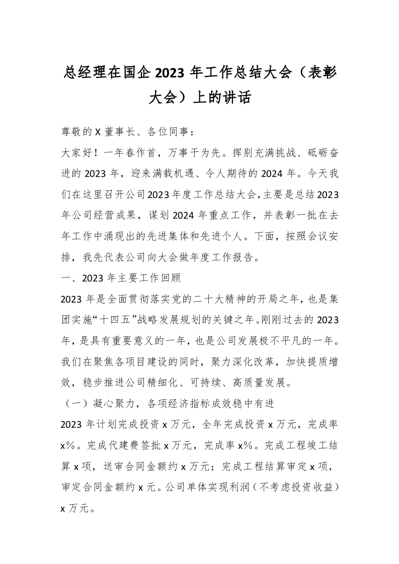 总经理在国企2023年工作总结大会(表彰大会)上的讲话稿
