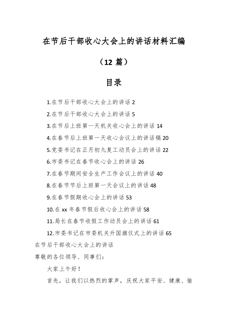 / (12篇)在节后干部收心大会上的讲话稿材料汇编