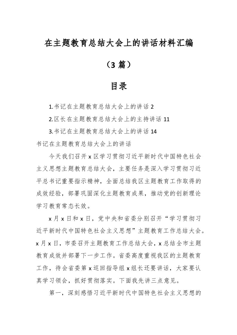 (3篇)在主题教育总结大会上的讲话稿材料汇编